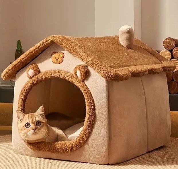 - Лежанки-будиночки – підходять для котів, які цінують відокремленість. Вони створюють відчуття захищеності та «свій куточок», що особливо важливо для нервових або сором’язливих тварин.